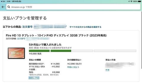 タイムセールで14,980円での購入かつ分割手数料0円で毎月2,996円の5ヶ月払で購入してみました
