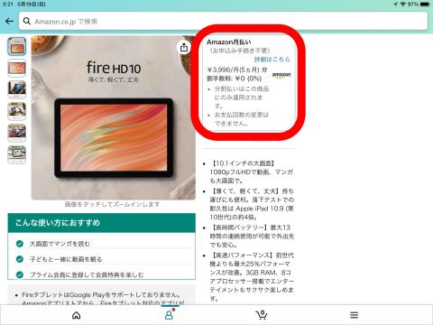 しかしAmazon Fire HD 10でKindleアプリを開いていると電子書籍を即購入出来てしまいます