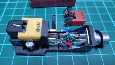 右のAT-35SはAT-VM35に付きました 右の35Sは真ん中の5Dの筈でしたが違ったものが入っていて、AT-VM35に付けたら付きました 丸針のせいかマグネットの原因か音量は大きくなりましたね。