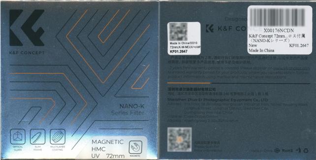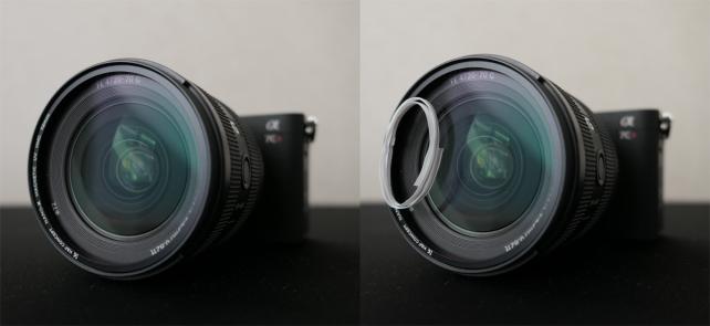 一般的に使われるフィルターなのですが、このフィルターは、金属部分が磁化されていて、同シリーズの様々なフィルターを磁力の力で吸着することで、容易に装着できるようにしたものです。