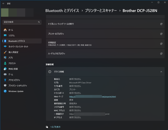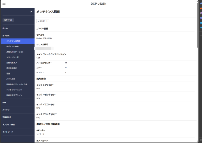 初期パスワードでログイン出来たので新たにパスワード設定しました。結構細かく情報取得や設定が可能なようですがブラザー謹製のユーティリティ群を一括インストールしているのでそちらの方でも設定や操作が可能ですしWindows11標準の設定からでもある程度デバイスの調整が可能ですし、ド素人的には「どれで操作するのが良いの?」となる訳であるますよ・・('A`)