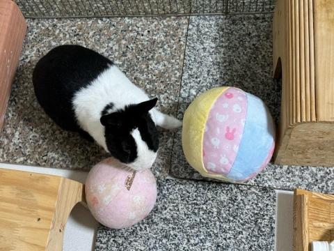 うさぎはたいてい(↑)のボールで遊ぶのが