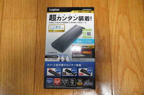 PCの周辺機器でおなじみのロジテックが販売しているM.2 SSDの外付けケースです。