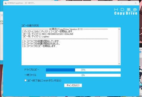 USB3.0経由でSN350→EXCERIA PROに約700GBをコピーしたところ大体1時間かかりました。