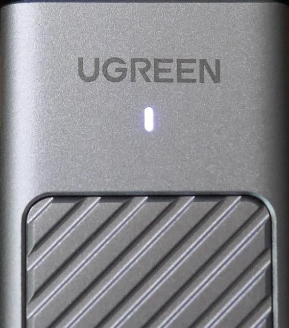 表面のメーカーロゴ下に、ホワイトLEDのアクセスランプがあります。