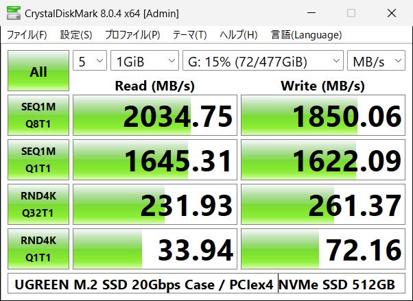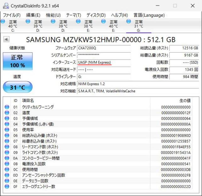 DiskInfoで確認しましたが、UASP(USB Attached SCSI Protocol)対応で、高速読み書きが可能です。