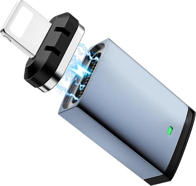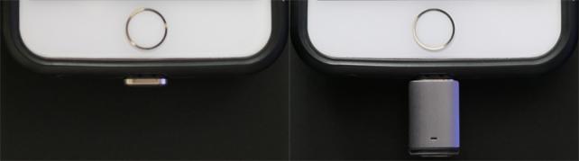 このアダプターは、スマートフォン側にライトニング端子を挿しっぱなしにして、充電時はアダプターを近づけるだけで吸着し、接続が完了するものです。