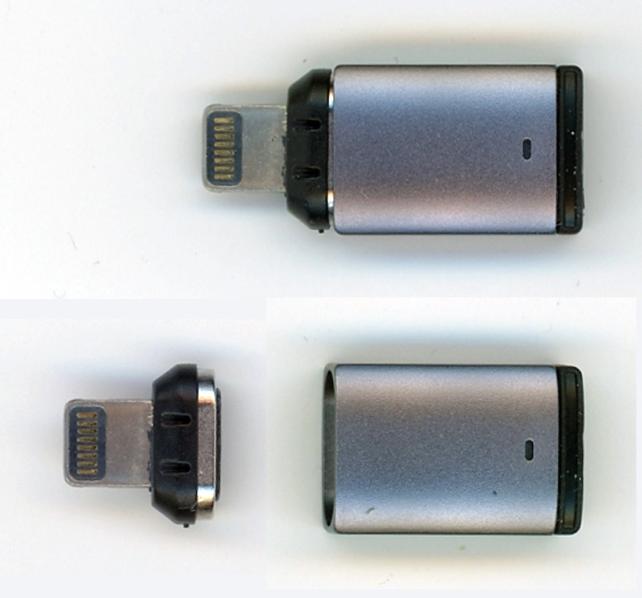 マグネットアダプターは、ライトニング端子部と、 USB Type-C変換部がマグネットにより吸着するものです。