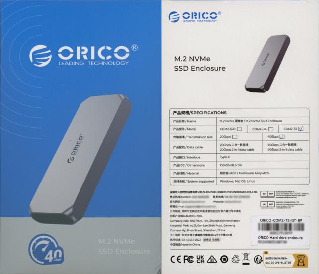 下部には、40Gbpsがデザインされたマークと、M.2 NVMe SSD Enclosureの文字が印字されています。