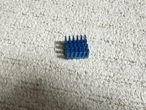 結果的に15mm角のヒートシンクを2つ貼り付けて終わりにしました。さすがにヒートシンクレス状態よりは発熱は抑えられるはずですので、多少は故障のリスクを軽減することは出来たでしょう。仮にあからさまに干渉するような配置に部品があった場合には、予備で買っておいたHS-21126を使うことになったはずです。