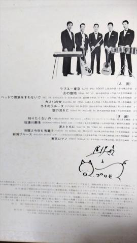 「ラブユー東京」がオリジナル曲で他は当時のはやり歌ですね サインは黒沢明とロスプリモスと読めます リーダー黒沢明はフルート担当でした 映画監督の黒沢明さんとは当然別人です。