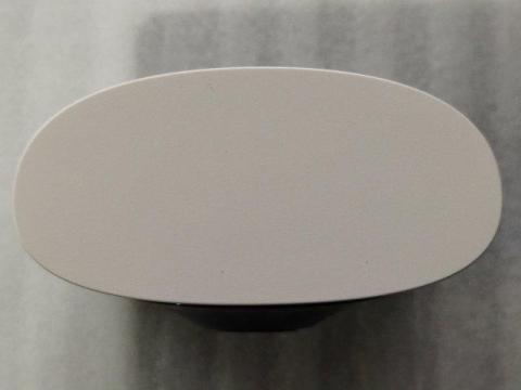 スピーカーホールと銘版が貼られています。