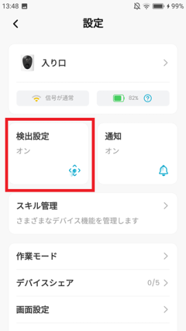 検出設定でモーションゾーンを設定できますので