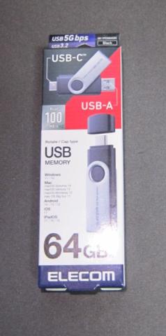 エレコム製のType-C/Type-A兼用USBメモリ64GBです.