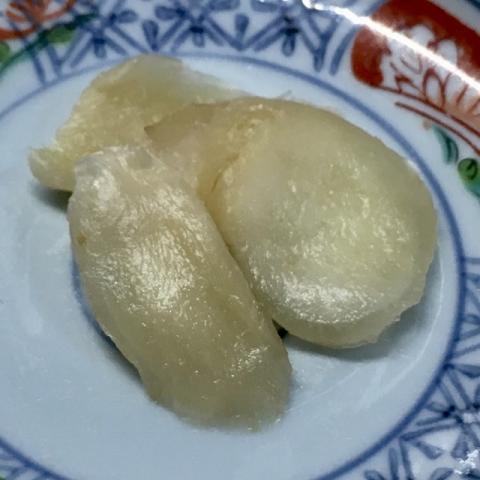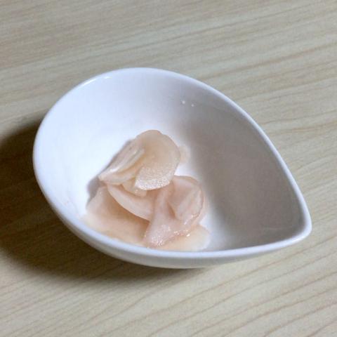 ところで、これ「甘酢漬け」なので少し甘いです。
