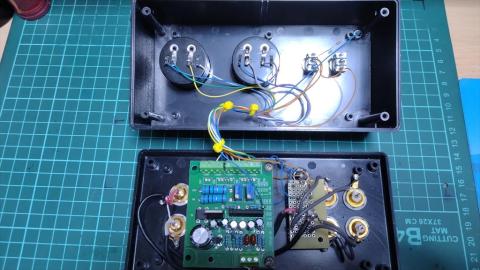 トグルスイッチは2個あり、1個は電源入り切り、もう一個は入力信号を2系統のどちらかに出力かをリレーを介して切り替えます その逆も可能です 配線材は余りものです