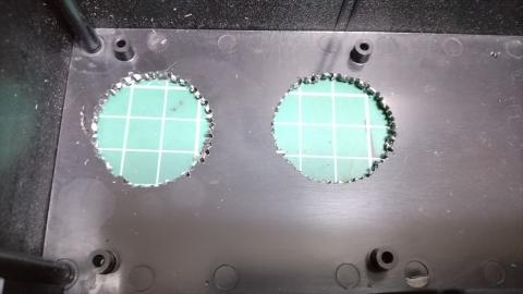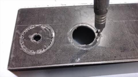 ハンド二ブラーで開けようとしたら無理でした 仕方なく細径のドリルで多数穴を