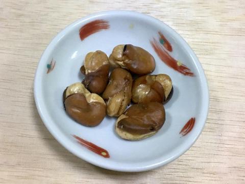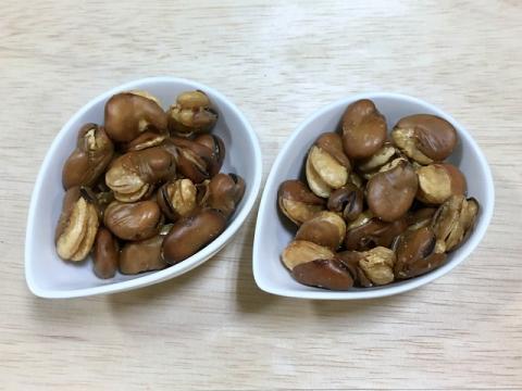 緑色の生の「空豆」ではなく乾燥させた茶色い「空豆」を油で揚げて塩を振っただけ。