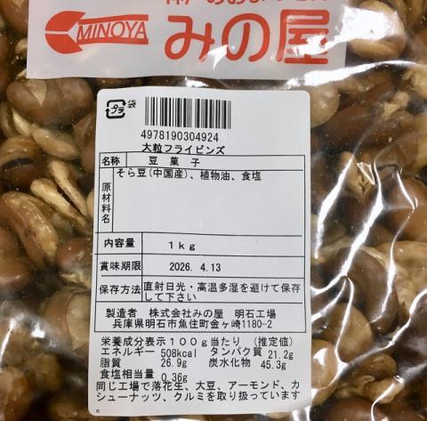 大粒フライビンズ 1kg 塩味 フライ空豆 いかり豆 イカリ豆 そらまめ 花豆 グルメ です。
