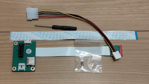 NVMe A/E Key から USB 2.0 480 MbsのポートとPCI Expressベース1.1(2.5Gbps)x1スロットに変換するボードです。