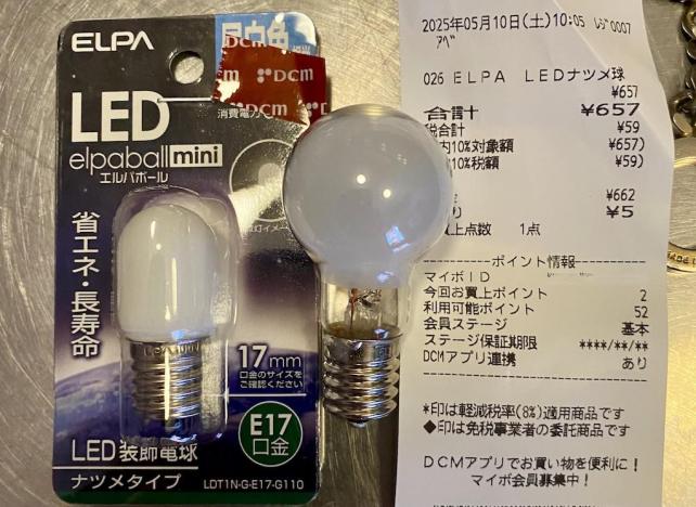 税込み657円 同じ口金サイズで、ナツメ球ではなくスポットライト形状のそれのほうが