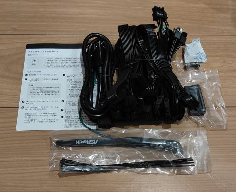 同梱物(インストールガイド、電源ケーブル、各種接続ケーブル、固定用ネジ、ATX 24 pin PSUテスター、マジックテープ、結束バンド)