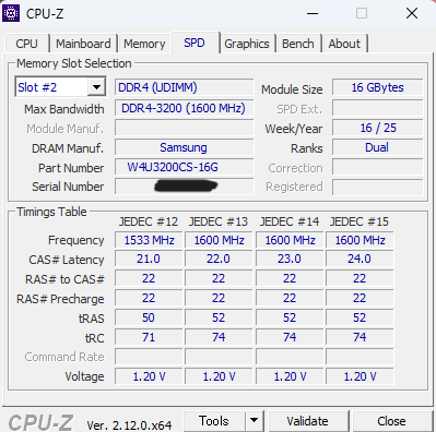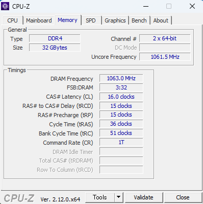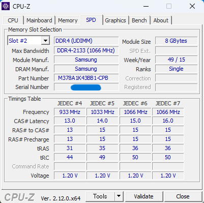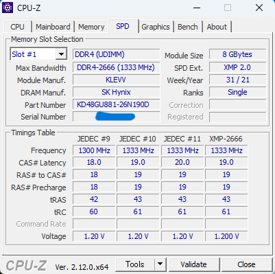 DDR4-2133 8GB × 2枚、DDR4-2666 8GB × 2枚 (いずれもシングルランク)の4枚構成でした。
