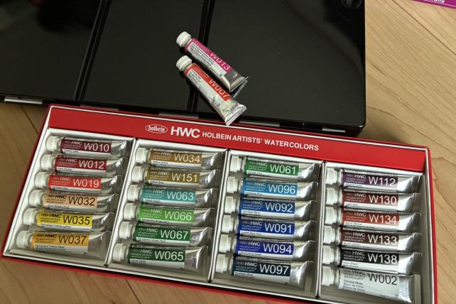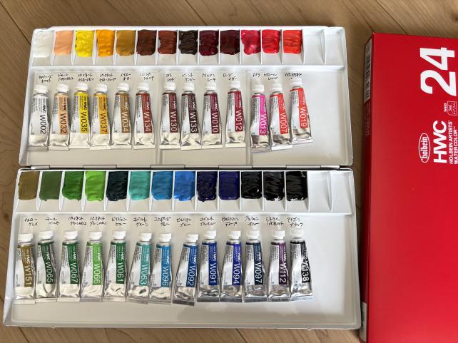 度の絵の具が良いのか? まったく分からないので調べてみると、ホルベイン透明水彩絵具が評判が良いので購入してみました。
