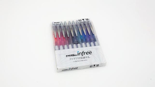 デスクでは「カクノ」を使っているのですが、鞄などの持ち運びには、ぺんてる株式会社の「エナージェル インフリー(ENERGEL infree)」という筆記具を使っています。