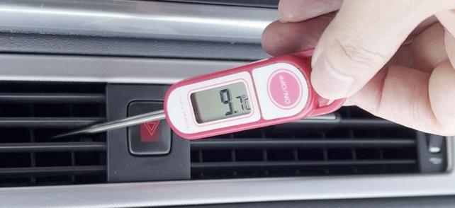 真夏の炎天下、外気温度38℃車速0km/h 停止状態アイドリングでこれだけ効いてくれれば上等です俺と親父は暑がりですがヘアコンを全開にした事は無いですし途中で寒くなってきて効きを弱めるくらいには冷えますエアコン最高!自室に居るより車の中のほうが涼しいです。(南向きの部屋でエアコンが古くボロいため)