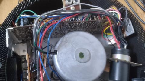 電源トランス外した処 結果的に外す必要は無かったです 丸いシールドリングに色々ねじ止めされているのでバラしていくのはややメンドイ。