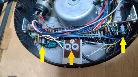 33/45回転用調整半固定ボリューム プレーヤー下からしか調整できない