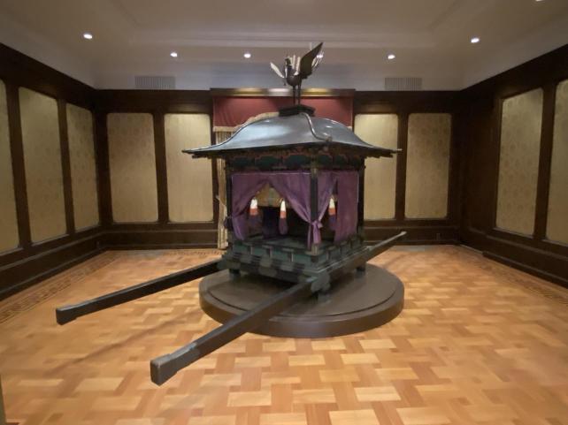 明治天皇が遷都の際、京都から東京まで行幸される時に乗られた「鳳輦」(ほうれん)と呼ばれる