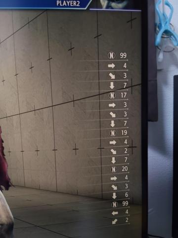 波動拳(↓↘︎→)を打ってみると、驚くほどに方向キーが揃ってます。意識もしてますが、以前はこんなに正確にはなりませんでした。下から順に入力キーが表示されて、右の数値は入力フレーム数です。正直、この結果には驚愕しました。