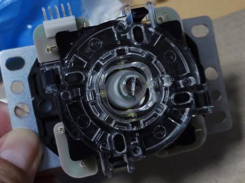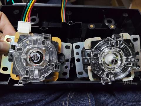交換したのは、三和電子の最新モデル「JLX-TPML-8YT-SK-DB」というレバー。静音設計な上に、スイッチを可変できるという、結構お高いパーツです。