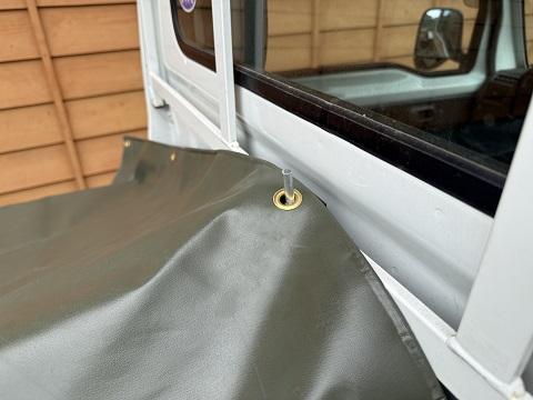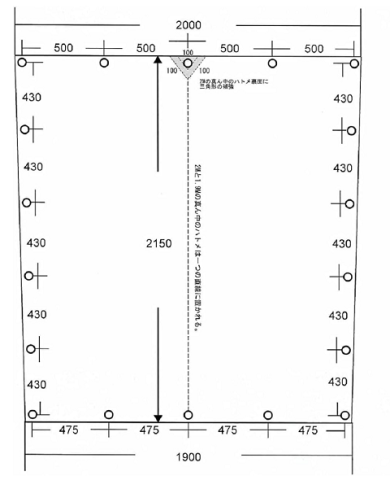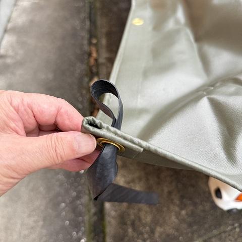 四方にハトメの穴が多めに準備されているので止めやすいと思いました。