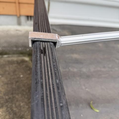 雨が降ったりすると水が貯まってしまうのでポールを付けてシートを支えるようにしました。