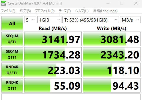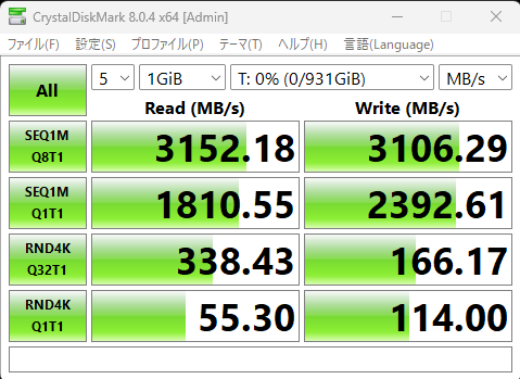 PCIE4対応だけど、M/BがPCIE3なのでちょっと本来のパフォーマンスは出せてない。