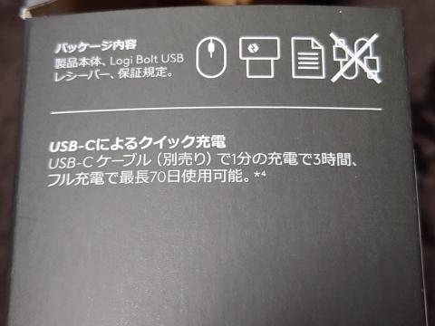 MX Master 4: 充電するためのUSBケーブルは、箱に付いとらんねん(付属なし)。自分で用意せなあかんのよ。