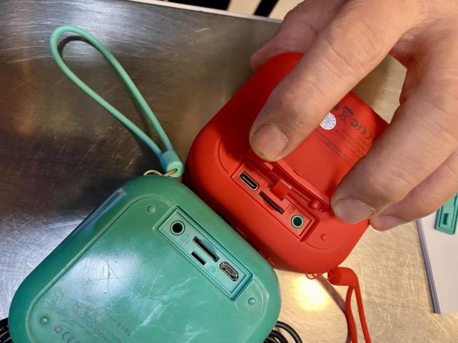ミニジャック音声入力口 マイクロSDカードスロット(MP3音楽再生用)は同じ