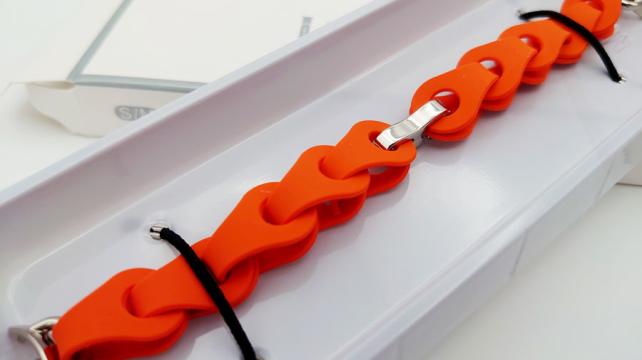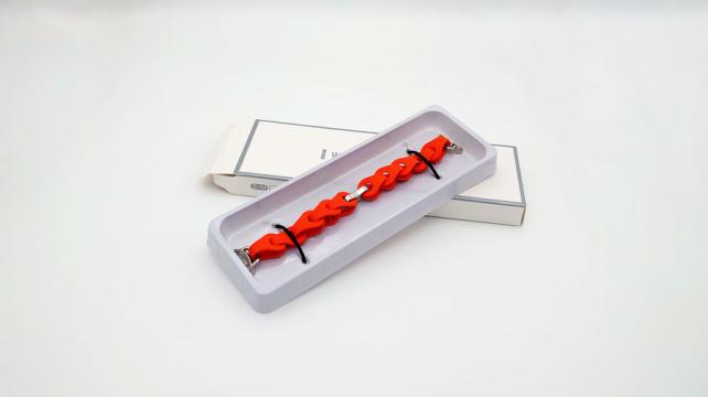 シリコン素材なので伸縮性があり、肌触りが良いです。細いせいもあり、べたべたしたかんじもありません。シリコンは高い伸縮性を持ち、手首の動きに追従しながらも元の形状に戻る弾性を備えています。これは繰り返しの変形に対する耐久性・疲労強度が高いといえます。