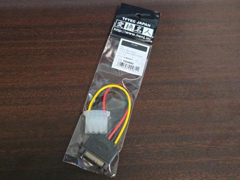 誰もがお世話になったことがある変換名人ブランドで販売されているSATA電源→ペリフェラル4pinに変換するケーブルです。