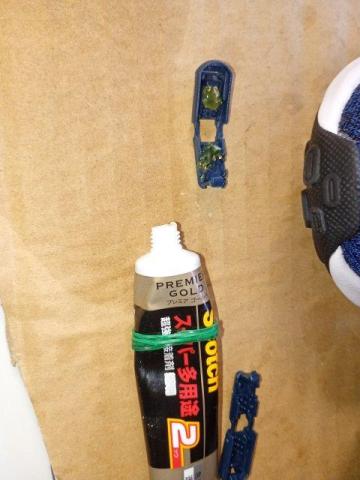 (ケーブルエンドは接着剤を塗布してから挟んでいます。抜けて外れるのを防止する意味で)