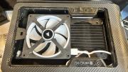 問題ありと思しき iCUE LINK システムハブとファンも一緒に交換し旧ファンも新しいハブに繋げ、予想が正しければ旧ファンも正常動作するはずなので設置しておきましたクーラーマスターのファンは仲間はずれにしました。出来れば280mmラジエーターをサンドイッチしたかったのですがケースに干渉し無理でした。