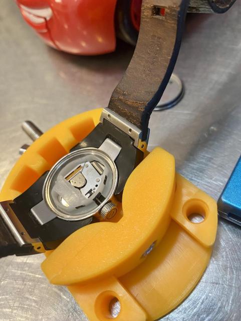 上の写真 文字盤の下に「凹」型の銀色が2個並んでいるのが見えると思いますが