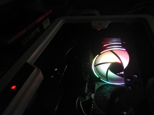 輝いていますSATA電源コネクタより電力を頂戴し本体ボタンで発光パターンを切り替えて使うことが出来ます