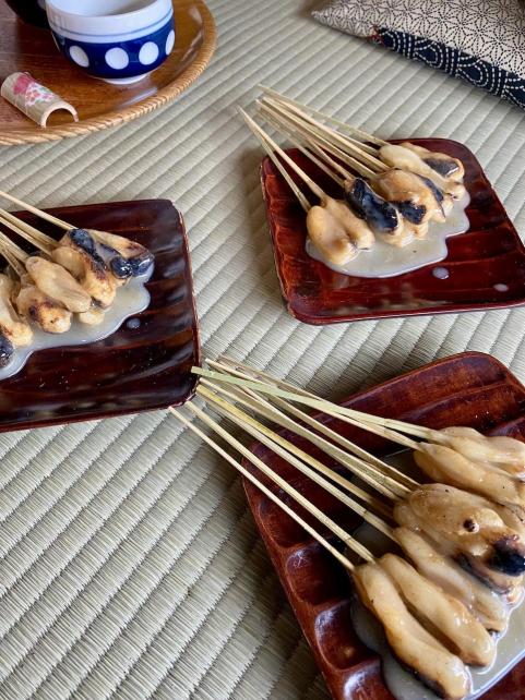 焼く前のお餅自体にもきな粉がまぶされていますが、タレは白味噌仕立てです。