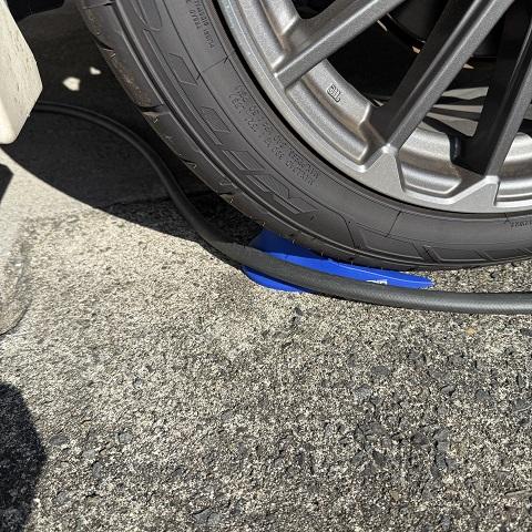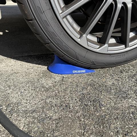 この製品はタイヤに滑り込ませてセットしておくだけ。