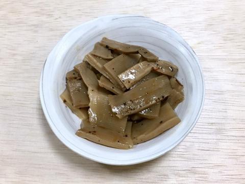 「競合大手メーカー」瓶詰のメンマと比較すると、やっぱり色が汚い。