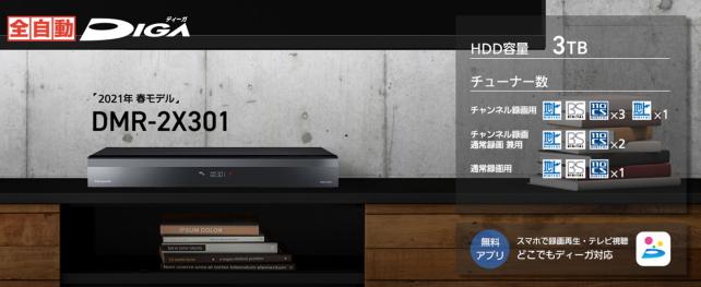 ※4:スマートフォンアプリ「どこでもディーガ(無料)」のダウンロードが必要です。iOS12.3以降、Android(TM)5.1以降に対応。サービスのご利用には、CLUB Panasonicへの会員登録(無料)と、インターネットサービス「ディモーラ」への機器登録(無料)が必要です。一部サービスの利用には、「ディモーラ」のプレミアム会員登録(有料)が必要です。